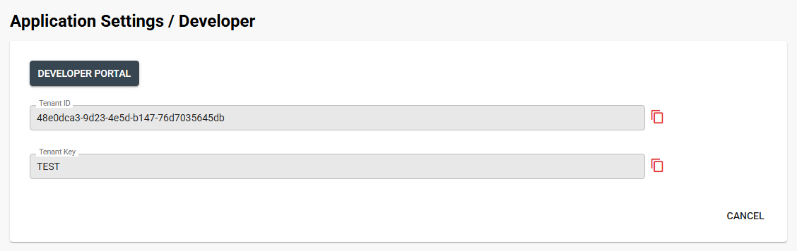 Be sure to have your tenant key and tenant id available as it is required to login to the portal, send requests to the API, and are often required parameters for requests. This information can be found in the Developer Section of application settings in the main Q Ware Application. Users must also have the privilege to view application settings.