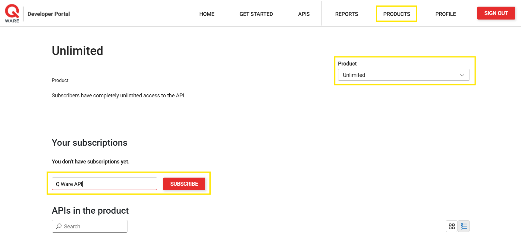 You must subscribe to the API by going to the Products area of the portal, and subscribing to one of the products to receive Subscription Keys to use for your requests. Subscription keys are issued on a per user basis and allow the API to track metrics for requests made using the keys as well as applying certain policies such as rate limiting. Requests must contain an HTTP header for "Ocp-Apim-Subscription-Key" with one of the keys as the value.